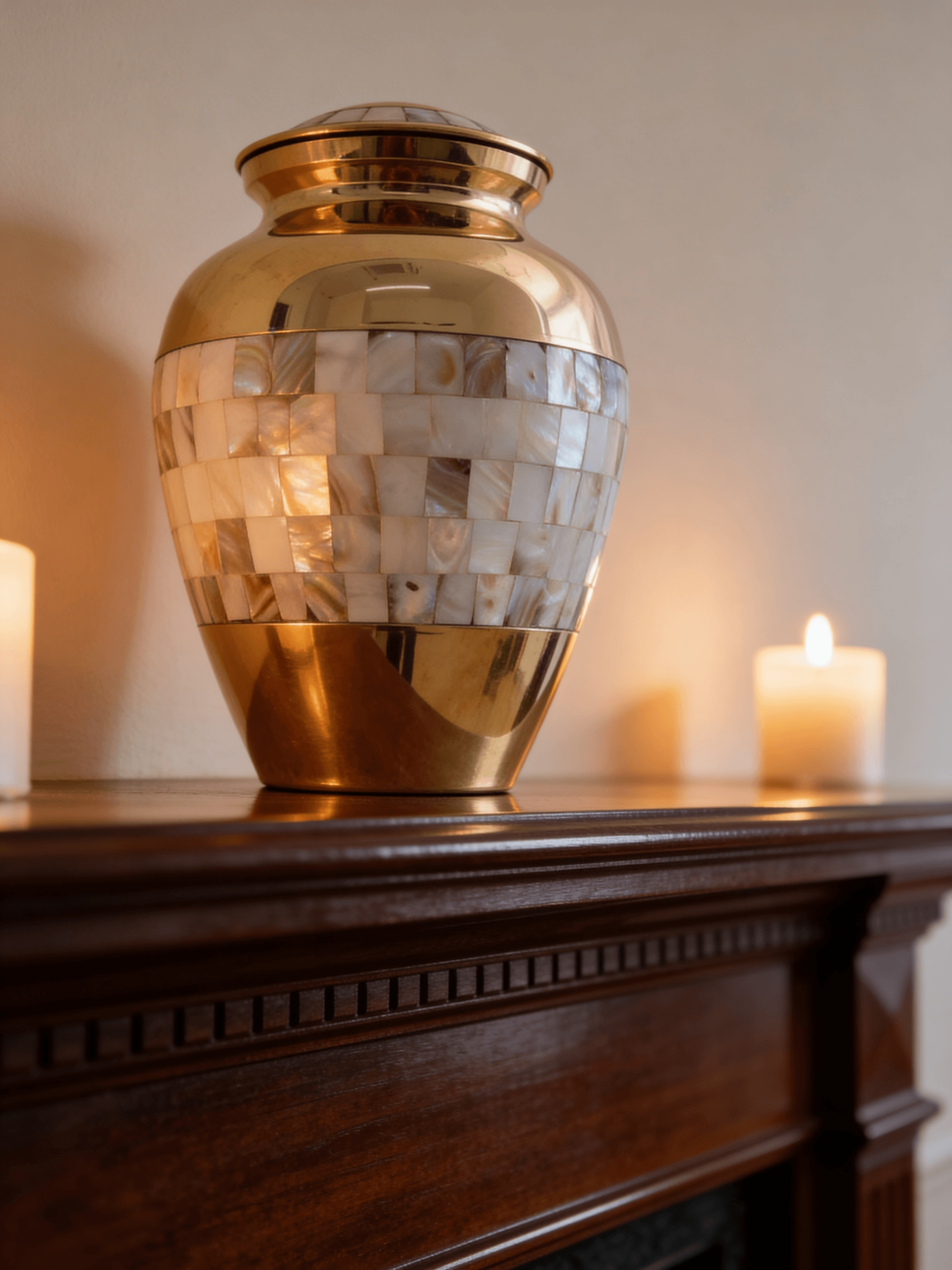 Kremavimo urna „Perlų motina“ – aukso elegancija