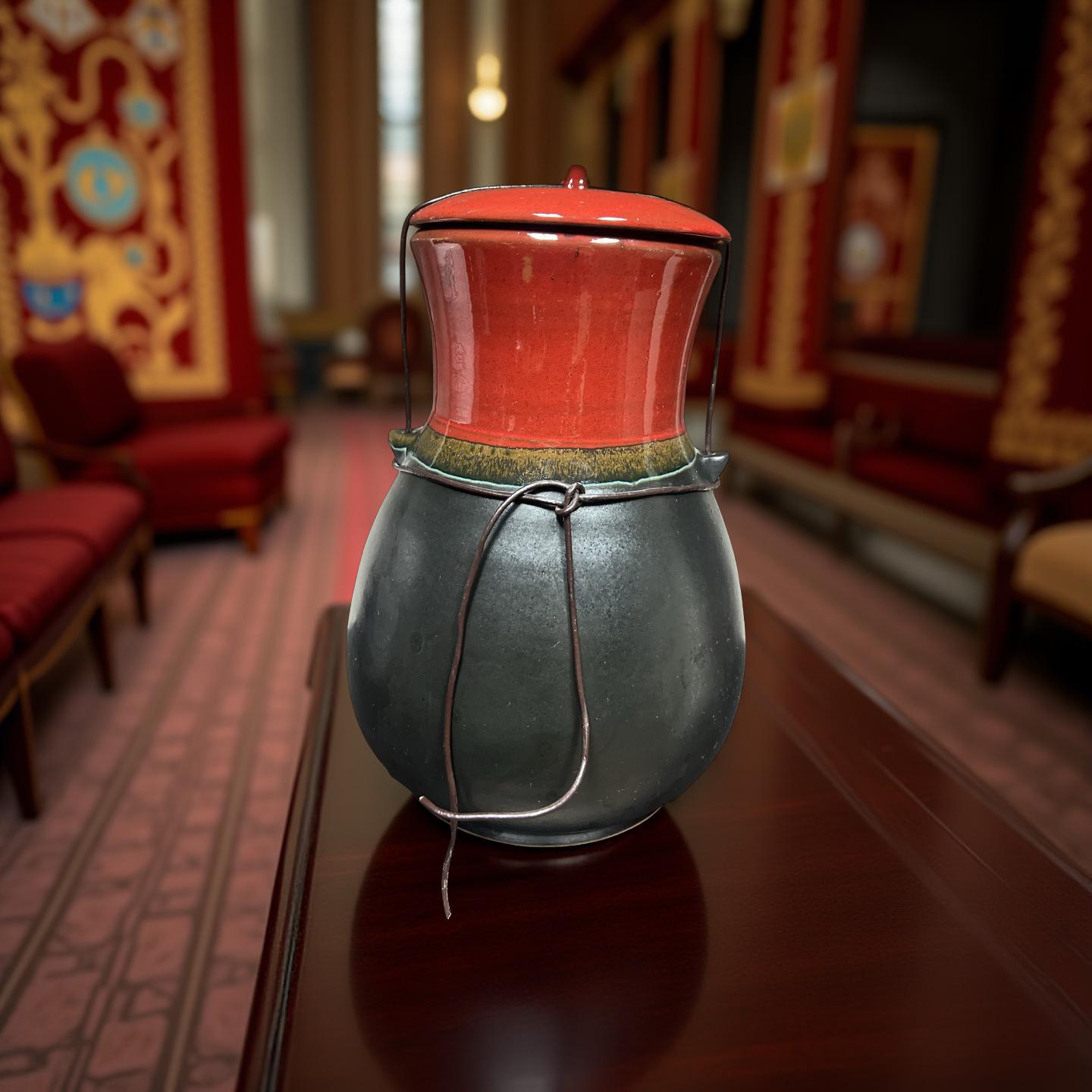 Raudona rankų darbo urna, sukurta žinomo puodžiaus Gintaro Dabašinsko, yra išskirtinis meno kūrinys, jungiantis tradicinę lietuvišką keramiką su šiuolaikišku požiūriu į formą ir prasmę. Kiekviena Gintaro Dabašinsko sukurta urna yra unikali, atspindinti meistro rankų šilumą, patirtį ir gilią pagarbą amatui. Ši konkreti urna išsiskiria sodria, raudonai deginta spalva, kuri simbolizuoja ugnį, gyvenimo ciklą ir atgimimą. Meistras naudoja senovines degimo technikas, leidžiančias išgauti subtilius spalvų perėjimus bei faktūras, kurios kiekvienai urnai suteikia gyvybės pojūtį. Formos paprastumas ir elegancija pabrėžia funkcionalumą, bet kartu išlaiko estetinį svorį. Gintaras Dabašinskas ne tik kuria keramiką – jis pasakoja istorijas per molį, jungdamas žmogų su gamta, tradicijomis ir amžinybe. Ši urna – tai ne tik paskutinio poilsio vieta, bet ir meno kūrinys, įprasminantis gyvenimo grožį bei orumą. Tai – gilios prasmės, pagarbos ir rankų darbo meistriškumo simbolis.